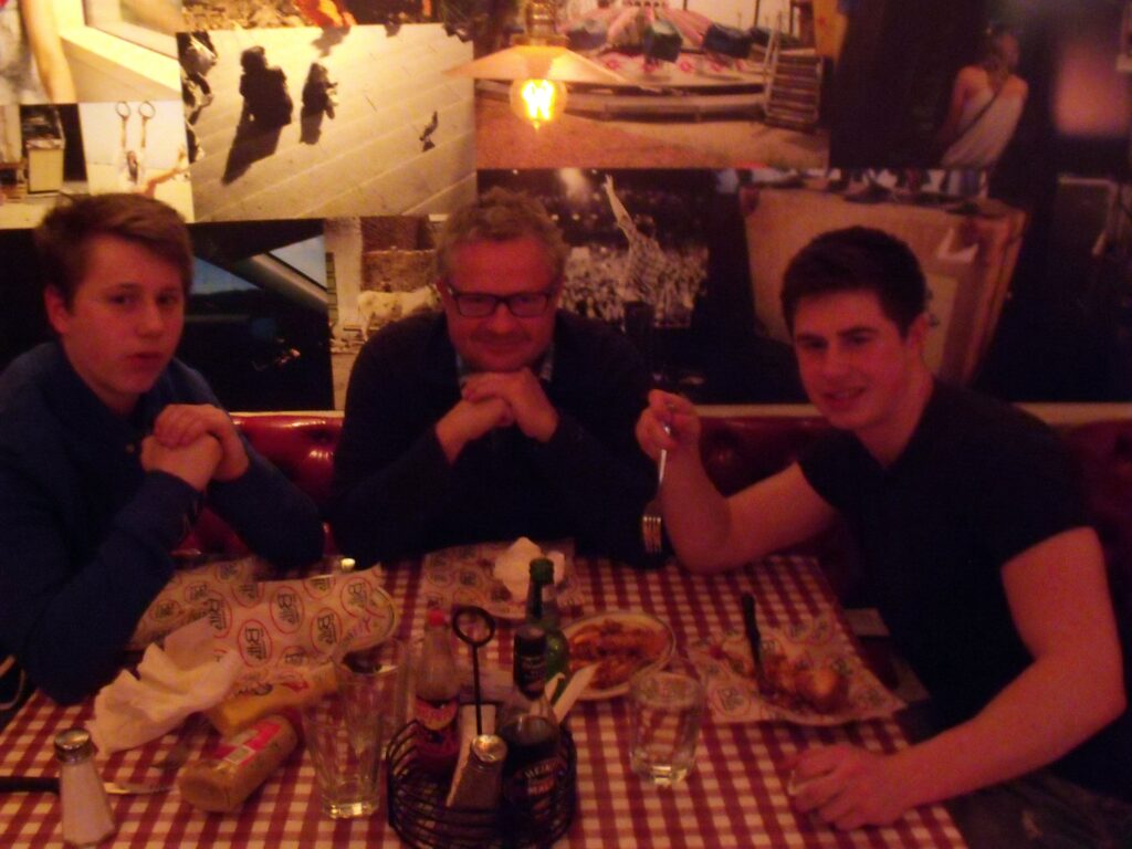 My relief at getting out of the restaurant was palpable. Sam and Josh would have stayed much longer, I am sure. But the smiles on their faces having been to such a hot spot lit up the dark street.