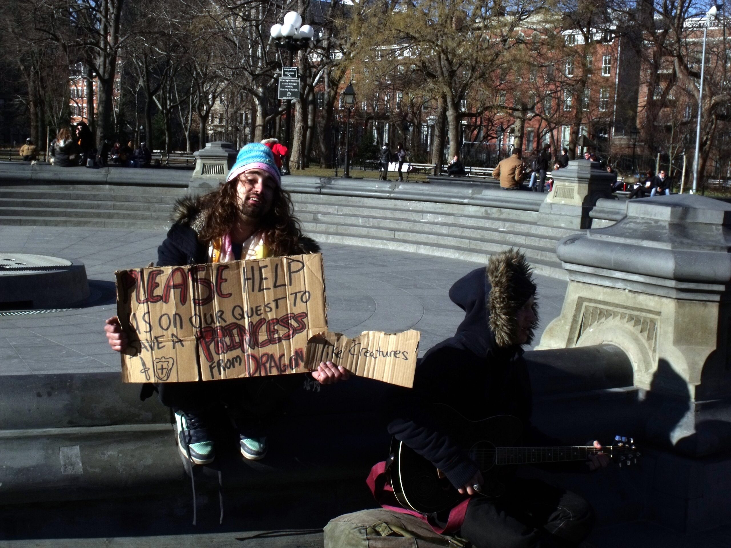 And then you run into the quirky stuff you want to run into in NYC. A chance encounter with our beloved childhood Sesame Street fave, Elmo, on a street corner. Trump Tower – that terrible golden edifice of vulgar vanity that would, just four years after our visit, act as the backdrop for the Donald’s announcement of his candidacy for the Presidential race. The hobos in Washington Square who, in a bigger, better way than all their homeless and cardboard placarded brethren around the world, have signs which declare they need money for a quest against dragons rather than the more pedestrian reason of merely being hungry.
