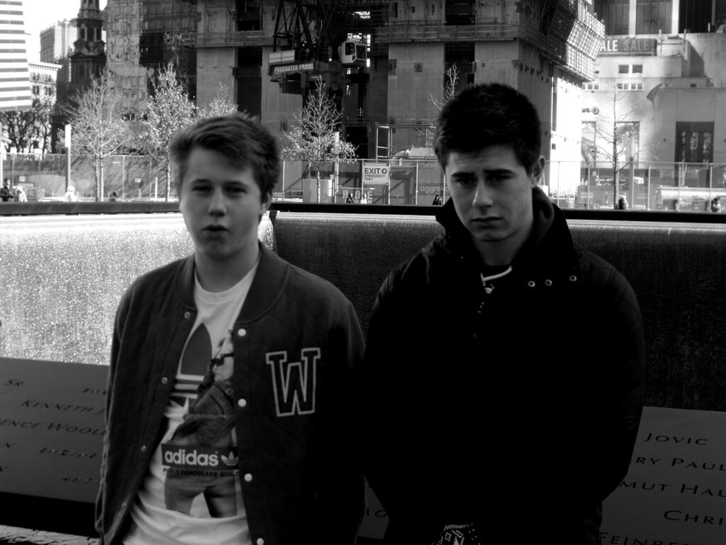 Downtown, we went to Ground Zero, which has now been turned into a permanent memorial with a black hole going deep into the ground and a cascade of water falling into it at the footprint of the Twin Towers. It is a sobering place and voices are kept subdued. The boys soaked up this atmosphere and I am glad we made our pilgrimage. The most shocking thing was to see the fire fighters’ helmets and also the extreme things people have done to commemorate this horrific event. There’s a picture of a man with a tattoo depicting the burning towers and scrolls of the legend. It is horrific and powerful at the same time. It would be like carrying Hell around on your back for all your life. Not for me. But so American.