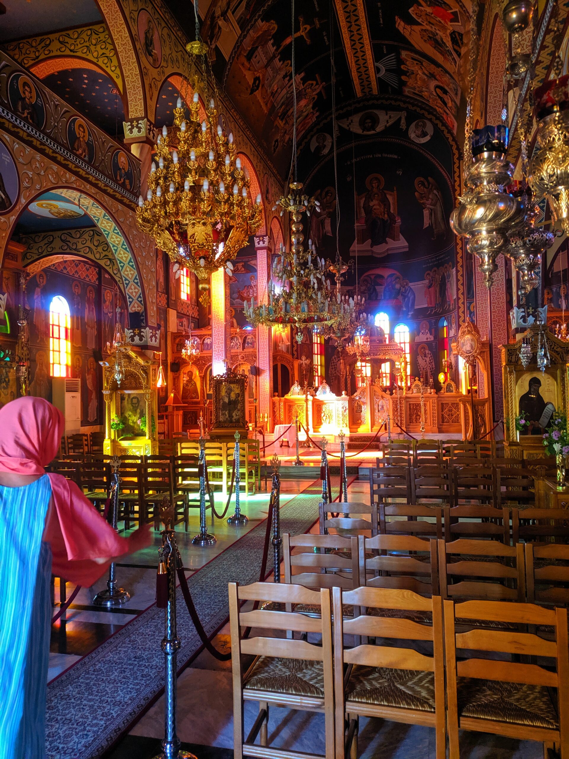 The town’s priest sing-chants his morning prayers and they echo around the whole bay, carried to everyone by microphone. It is that Orthodox mix of the Imam in his minaret and the medieval Christian plainsong.