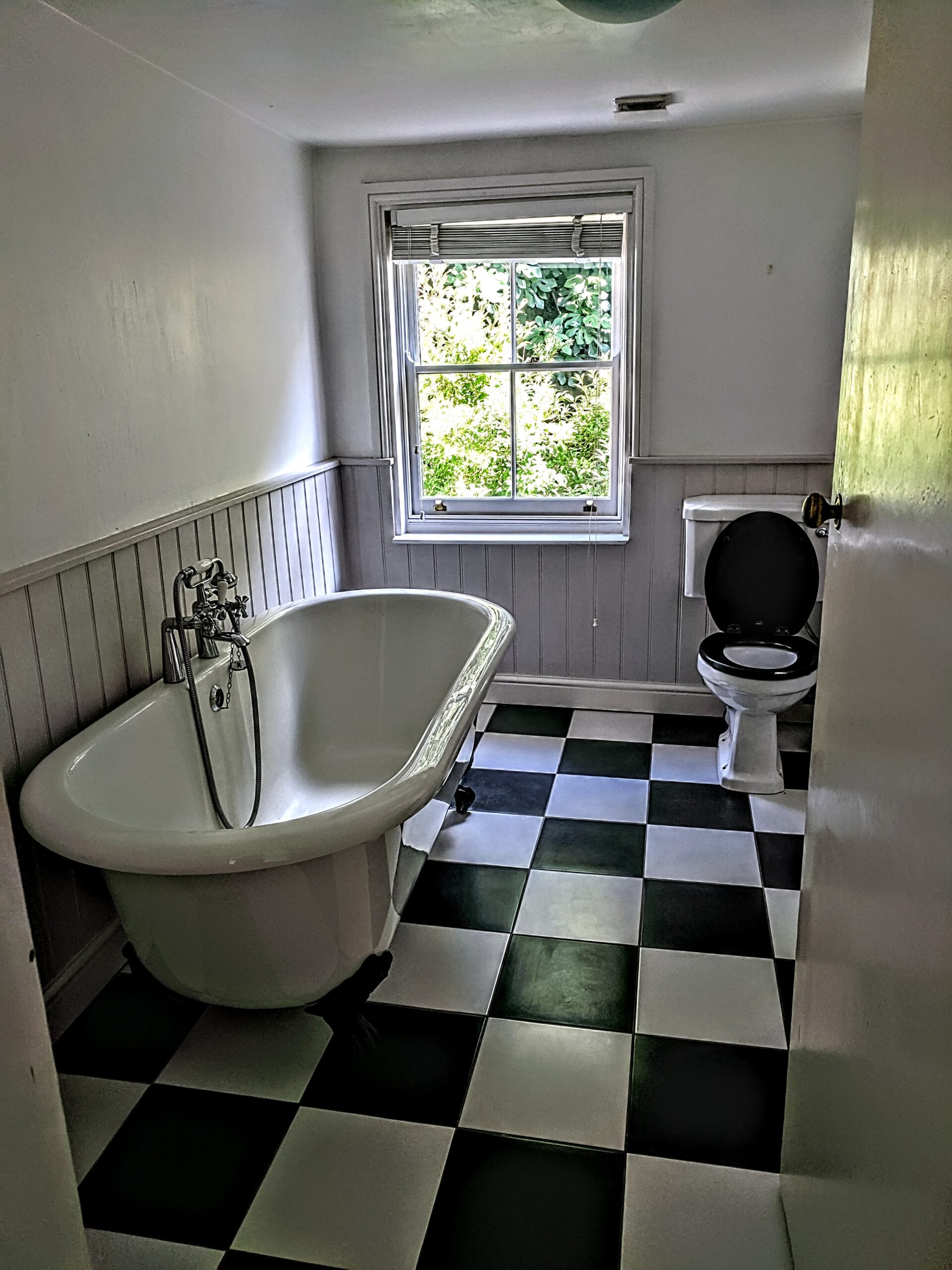 In the 1970s, when I was growing up, my household and the entire nation, seems to have taken leave of its senses. A rash of pink porcelain or avocado ensuites swept the land. Liberated from the “do you want this in white or white?” strictures of the post war period, where just having a bath in the house was an untold luxury, the country went crazy for colour. Skip-fulls of thrown out baths later and those of us with better taste have dispensed with these colourful cousins of real baths – I had to suffer an avocado suite in my Penzance flat for five years, but Penaznce is a time warp itself, so that was part of the charm. However, when I choose a place to live, the bathroom and the bath in particular is the primary place of interest. If it has a cork floor or those large black and white checks on the floor, or if the floor is made of wood, we’re in business. If the bath is an enamel, claw-footed affair with a lip, doubly so.