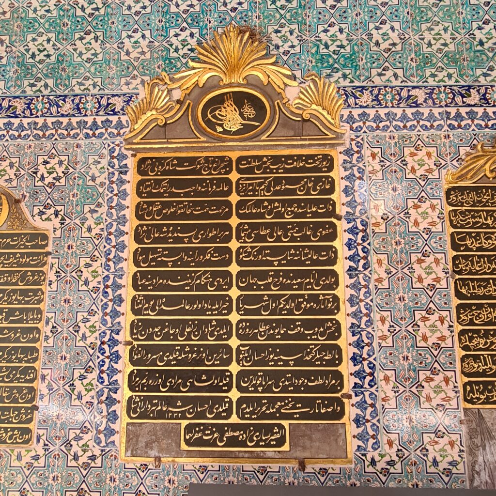 We stroll around the harem, which is a village in its own right: we peak into the wives’ dormitory, which is surprisingly not so lavish; we see the contrast between the slaves’ hammam and that used by the Sultan and his mother (simple stone versus marble and gold) and we realise that the head eunuch was the third most powerful man in the entire palace. The harem houses both wives and the Sultan’s concubines. He must have been exhausted.There are audience chambers and a smoking room. It must have been an extraordinary place to live, combining ceremonial function, high politics, family living, a lot of sex and the centre of empire.