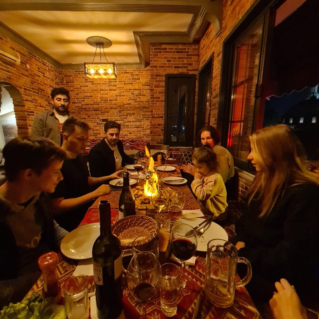 There are other reasons why Istanbul is such a perfect place for us to be together as a family. Our adult children live their own lives now, so we join together as different households. Like the city we are in, all people meet here as equals. Istanbul is a trading city as well as an Imperial one, therefore, it is a fusion of all the families of the globe: Jews, Muslims, Christians, Zoroastrians, every hue and colour of humanity brought together in one roiling, bubbling cauldron of tolerance and trade. It is a place of great historical, religious and cultural significance sitting at the Western edge of a vast secular nation. There are societal norms and ways of behaving, but you can still be yourself, individual, distinct. There are new tastes and sights to experience and ways of being which are alien to our western eyes but this city accommodates for all. One night we ate in a restaurant that doesn’t serve alcohol, and that was no problem; but if alcohol is what you want, the option is over the street. Unlike the place where we had just come from, Paris, where society is organised according to strict rules and codes of behaviour and there is a French way of doing things which must not be departed from, here they have a more flexible way of being. Here, it is not that anything goes, it is just that there are many options and they can all muddle along beautifully side by side. This is what makes Istanbul the great melting pot, the cornucopia of cultures that is so unique. Here, everyone can be themselves and also part of the collective. No one is in a prescribed role – we are all free to be as we wish to be, as well to be one family.