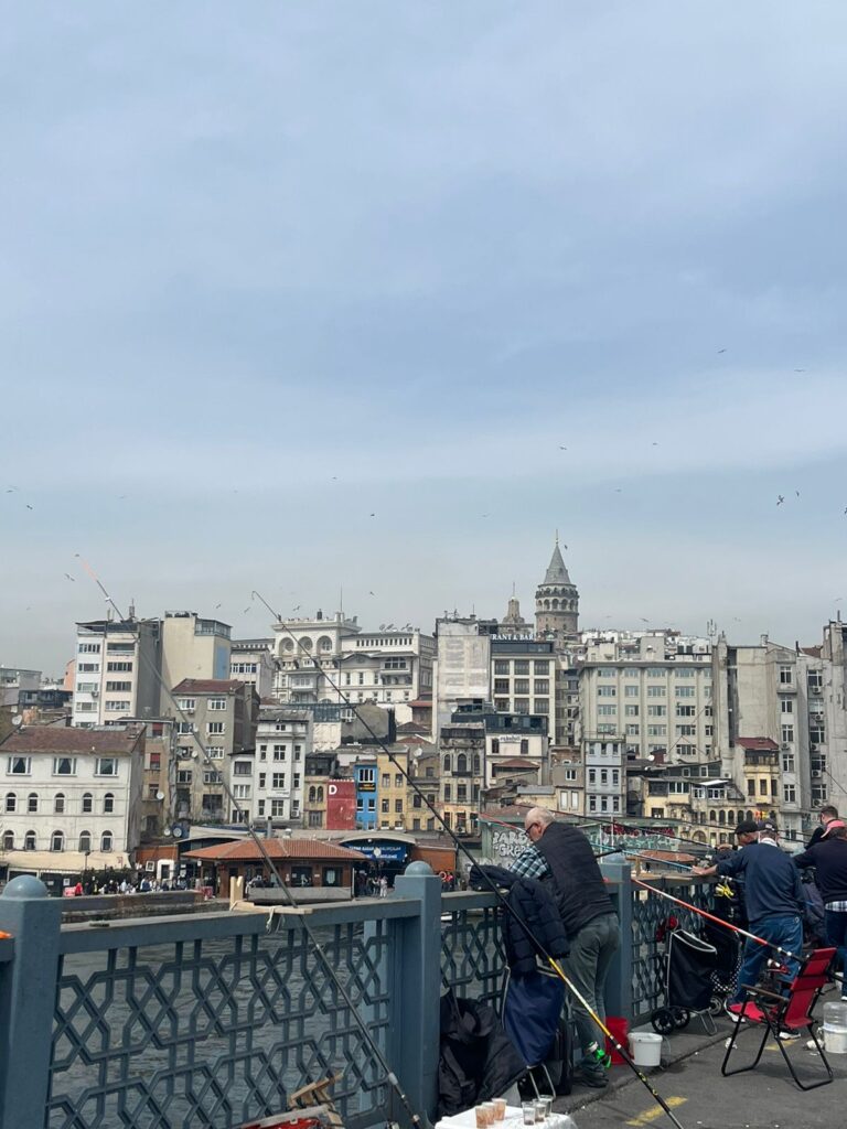 Sam and Hannah disappeared into the old town and had a spectacular lunch. Josh and Katy bought tickets for the Bosphorus boat and we walked over the Galata bridge and up to the Galata Tower. The fishermen on the bridge were battling the rain and wind but had some success judging by their burgeoning buckets. Emily did not like the idea of them using small fish to catch bigger ones and certainly not the idea of eating fish heads.
