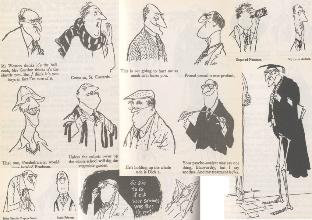 Over our lunch, we discussed the oddments that were the other staff members of the prep school we had both attended. Obviously, he had a rounder perspective than I did as the other teachers were his peers. But we both agreed they were an extraordinary collection. The only one who seemed vaguely normal to Jeffery was Mr. Hopkins, who he went into business with and who collected toy soldiers. All the others were like characters who had escaped the staffroom from the Molesworth books by Geoffrey Willans and Ronald Searle.