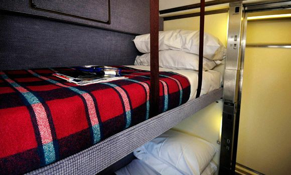 Sleeper trains are glamorous. Cary Grant used one as an escape route from New York when he was being pursued by the police for suspected murder in Hitchcock’s classic North by Northwest. The dining car scene with Eva Marie Saint is one of the great seduction scenes in cinema and it is just one in a long list of star roles played in films by the world’s famous night trains. Murder on the Orient Express, From Russia with love and Night train to Lisbon all centre their drama on nocturnal train-based activity.