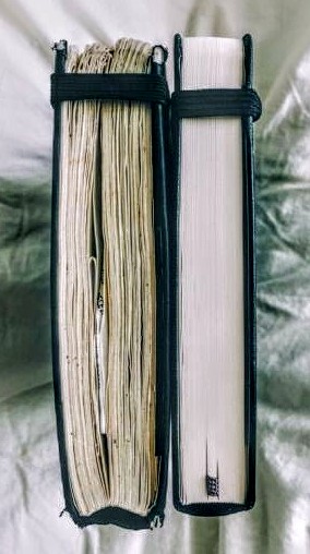 The paraphernalia of the written word – ink, fountain pen, pencil, paper and notebook – are part of my identity as a writer and human being. I have lugged box loads of Moleskine’s, scrap books and my collection of leather bound journals from house to house over the years – only a portion of which have been filled. The rest are there because they caught my eye on some market stall or other, or in a shop; because they would come in useful one day, because they fitted into some imaginary plan I had to write about this or keep notes on that. Green ostrich skin for my travels down the European Atlantic coast; four sizeable Indian journals bought in Pollença for my life journals. One very large format inlaid black leather volume for a journey to Morocco when we can travel again. Plus a plethora of decorative books, bejewelled and inlaid with gemstones and their black, plain, Puritan Moselskine cousins. All just waiting for the right opportunity to fill.