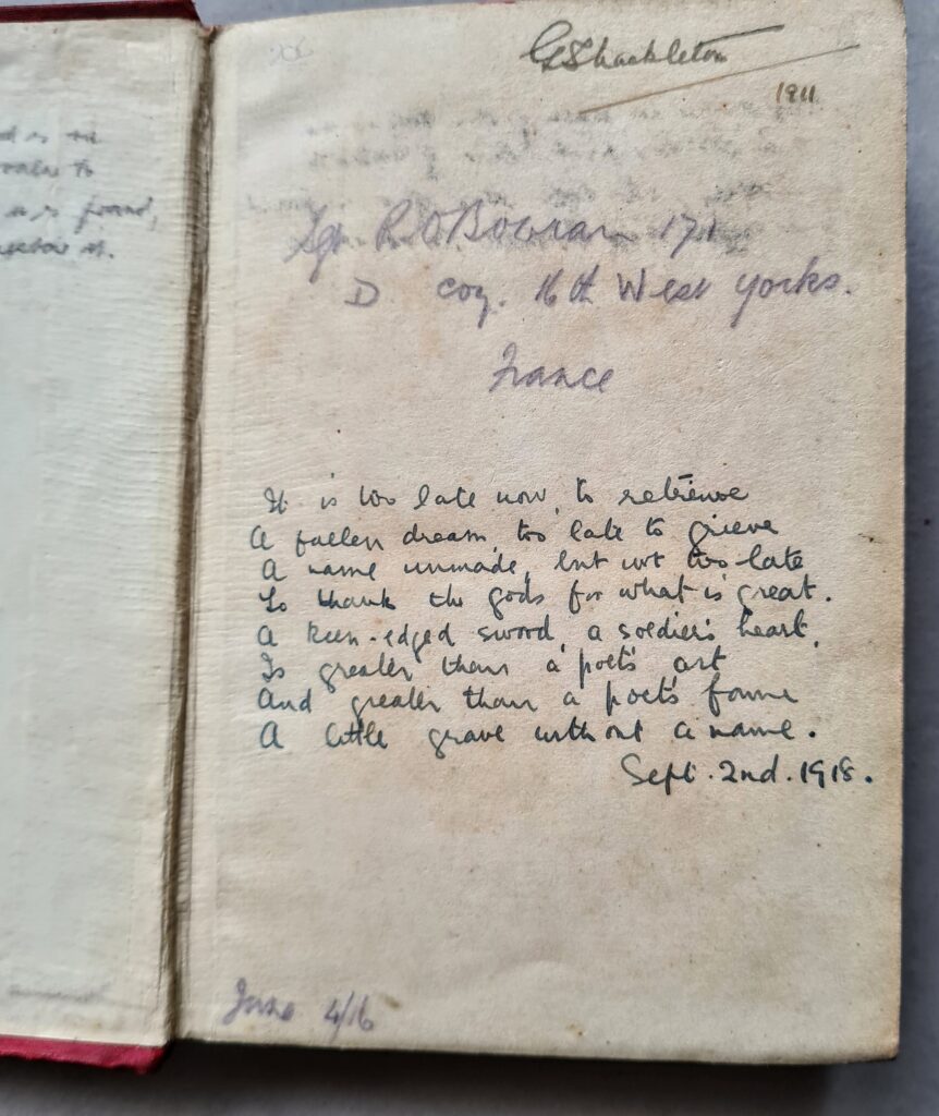 Notebooks found at my grandmother’s – 1796 and 1950 Robert Browning’s poetry – leant for comfort at the Ypres Front 1917 My grandmother’s In Memoriam poem