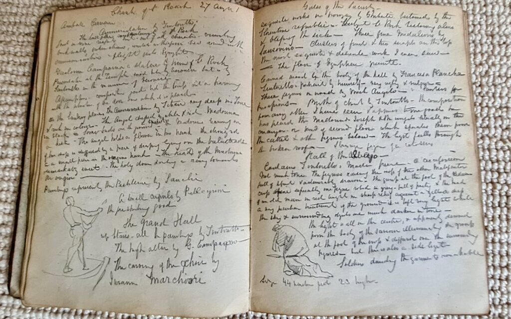 Other people’s notebooks are also rich with interest – even those of perfect strangers. Antique book shops occasionally throw up surprises. My old English teacher from prep school wasn’t really a teacher at all. He was an antiquarian book seller and collector of military memorabilia. He combed the bookshops of Edinburgh for valuable ‘finds’ (something valuable that hadn’t been discovered yet and lay inert waiting to be revealed). One day in 2001, he found a find. A series of nine hitherto never seen original drawings by the C18th Romantic visionary poet and artist, William Blake. At auction they fetched £5 million. It is the stuff of legend.