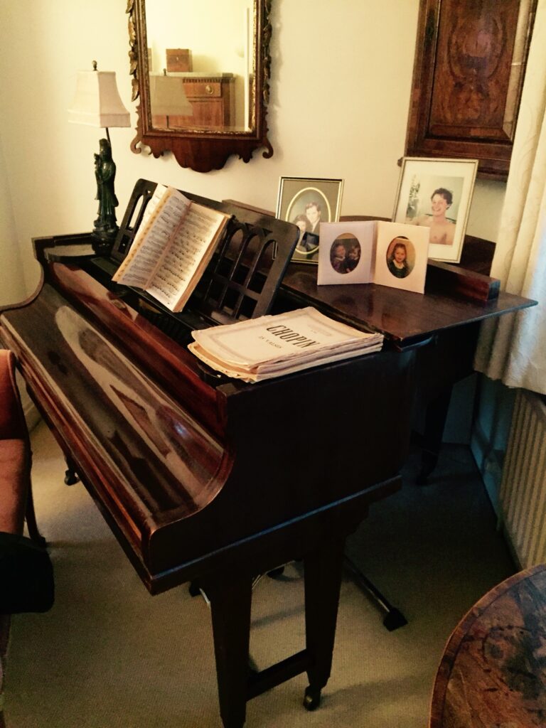 Wimbledon fortnight, curtains closed. Undisturbable. The Carl Ecke mini grand piano: “I should think there are a lot of things you’ve never heard of” – your pensée sur l’escalier retort to the school enemy who said she had never heard of your make of piano. “Bovril warms like winter woolies”; second prize in the national competition for a new advertising strap line. Popping in to see Granny Wilkinson in her flat. Geraniums – a whole greenhouse full at Scarcroft. Hateful Skelfield, beloved Calder Hall. Harewood garden before it was commercial – the owls sentinels on the brick summerhouse, weather-worn and faces wearing away, and the seemingly huge waterfall that wasn’t huge at all. M&S in Harrogate and your regional pride: “it’s one of their flagships where they try out new things”. Watching classical music concerts in BBC2. And classic films like My Fair Lady and Guess Who’s Coming To Dinner. Laughing at Peter Cook and Dudley Moore, Beyond The Fringe, Fawlty Towers, The Good Life and Dad’s Army.