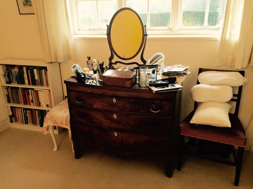 Allan’s of Harrogate. Brill’s of Leeds. Callard and Bowser’s orange creams. Fry’s Chocolate Cream. Austin Reed in Albion Street where you bought that all grey painting of a becalmed boat that I liked for £40, which was a small fortune. Pink wallpaper in your bedroom. The green silk watermarked wall paper in the drawing room. Schoefields, where we parked. Your painting lessons with Marcus Ford. Bridge lunches with Beryl Barnett , Silvia Hansen and Caroline Blackmore. Bolton Abbey’s hole in the wall. Winter picnics with Thermos flasks of Heinz tomato soup and chicken sandwiches. The wooden toadstool salt and pepper shakers. Green and pink floral bone china tea cups. Your record player – stereo. Beyond the Fringe. Pete and Dud. Not only but also. Sitting at one end of the sofa, feet tucked up and underneath.